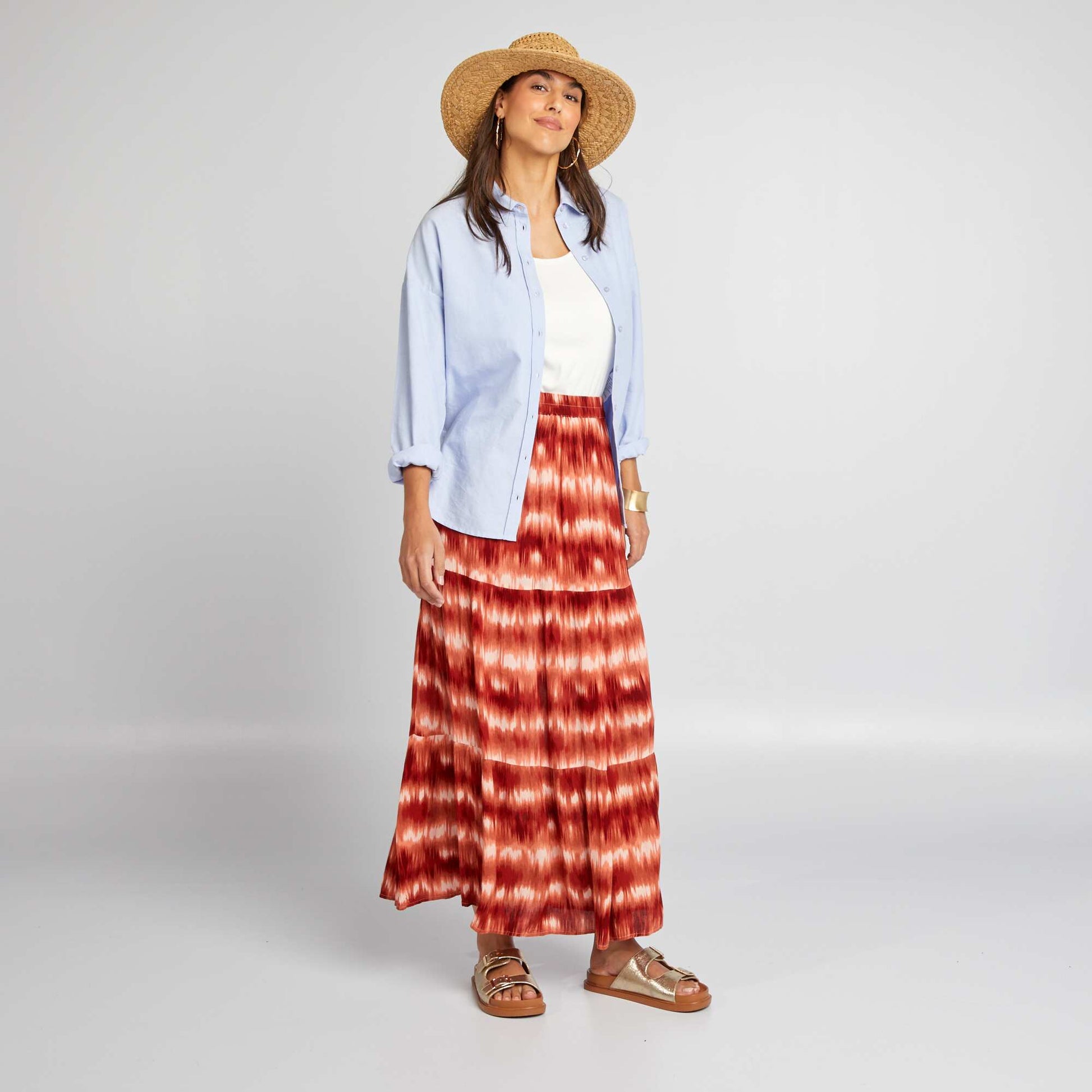 Jupe longue en maille crêpe Orange