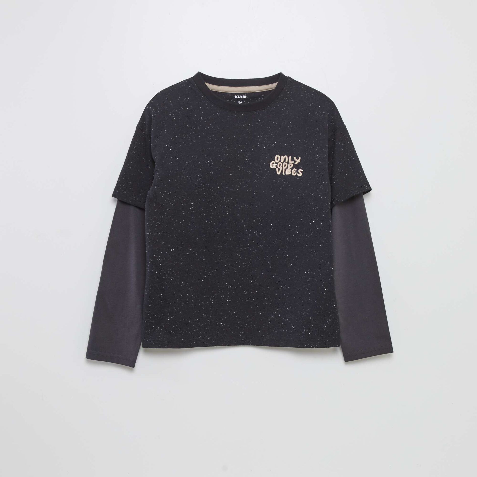 T-shirt doubles manches en jersey Noir