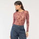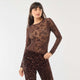 Body transparent avec fleurs en velours MARRON